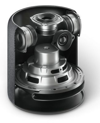 Five strategically positioned speakers place each instrument and vocal around the room just the way the artist intended. Three midrange speakers provide rich, natural vocals. A single tweeter produces crisp high frequencies. And the downward-firing woofer generates powerful, room-filling bass.