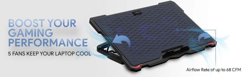 4 Medium and 1 Large Sized fans provides a steady 68 CFM air flow to keep your laptops cool and performing at peak ability.