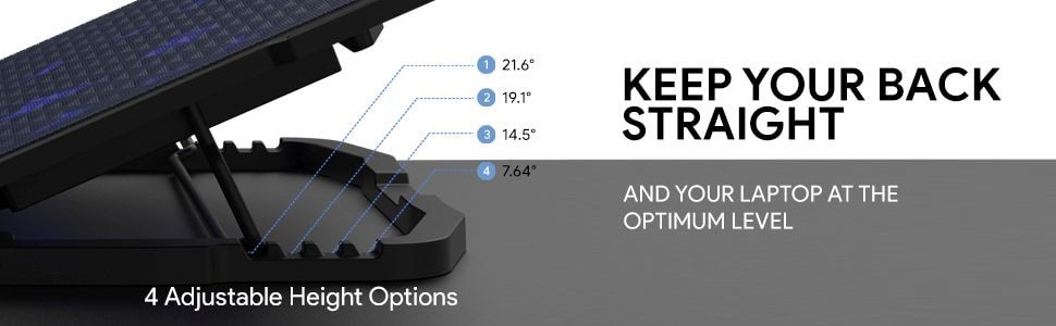 | Key Features | 5 cooling fans Blue LED lights 4 adjustable height Sturdy metal plate 2 additional USB ports Non slip Silicone Pads |