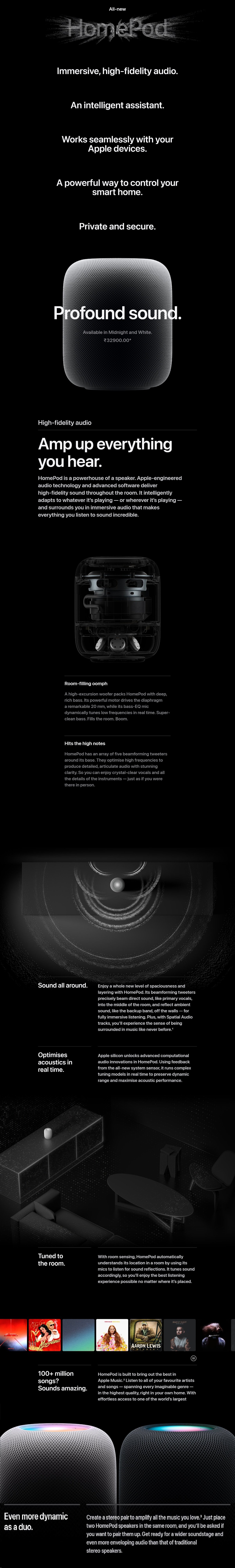 | Key Features | Immersive, High-fidelity Audio Intelligent Assistant and Voice Recognition Temperature and Humidity Sensor 9.82 cm (4-inch) High-excursion Woofer Apple Music Radio or Episodes on Demand Ultra Wideband Chip for Device Proximity |