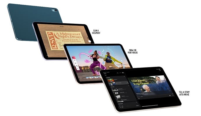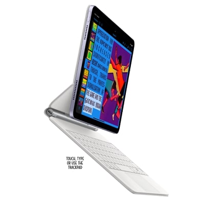 iPad Air lets you immerse yourself in whatever you’re reading, watching or creating. The 27.69-centimetre (10.9‑inch) Liquid Retina display features advanced technologies like True Tone, P3 wide colour and an anti-reflective coating.