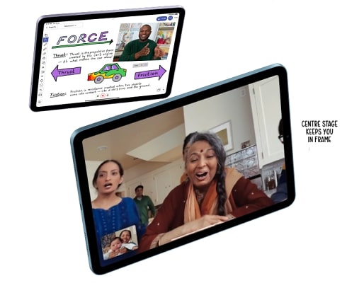 The 12MP Ultra Wide front camera enables Centre Stage, making video calls more natural and content creation more fun. As you move around, the camera automatically pans to keep you centred in the shot. When others join or leave the frame, the view expands or zooms in.