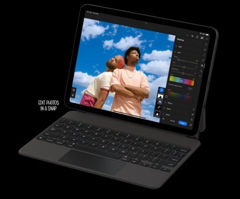 iPad Air lets you immerse yourself in whatever you’re reading, watching or creating. The 27.69-centimetre (10.9‑inch) Liquid Retina display features advanced technologies like True Tone, P3 wide colour and an anti-reflective coating.