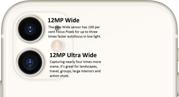 All-new dual-camera system. Take your photos from wide to ultra-wide. A redesigned interface uses the new Ultra Wide camera to show you what's happening outside the frame - and lets you capture it. Shoot and edit videos as easily as you do photos. It's the world's most popular camera, now with a whole new perspective.