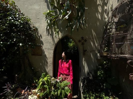 kicks in for low- to mid-light scenes. The Neural Engine analyses multiple exposures pixel by pixel to bring out unprecedented detail in the magnifying glass, the woman and the wall.
