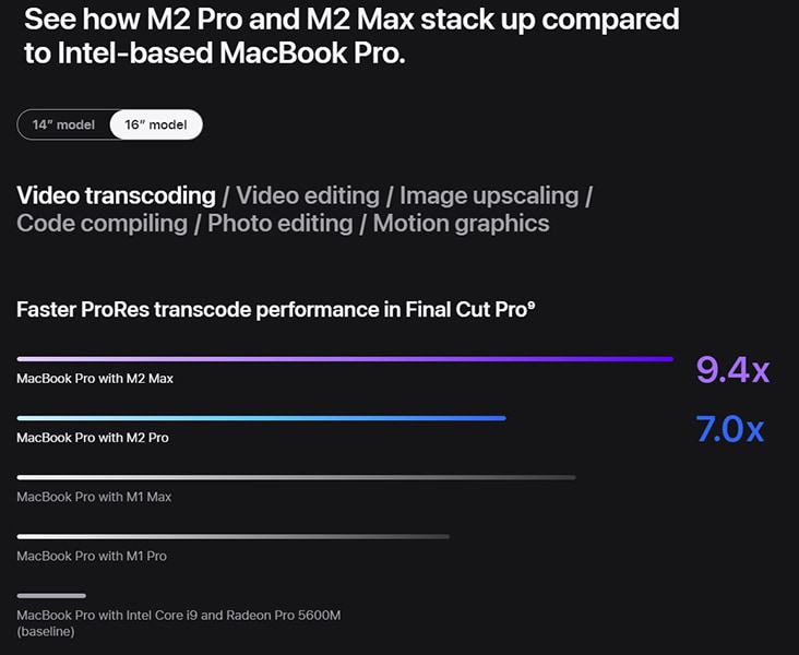 Introducing the next generation of Apple silicon for pros: The lightning-fast M2 Pro and the extraordinary M2 Max — the most powerful and efficient chip ever in a pro laptop.