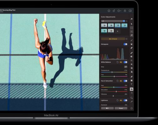 Up to 9x faster. Even for a 16 core Neural Engine, that's a lot to process. Apps on MacBook Air can use machine learning (ML) to automatically retouch photos like a pro, make smart tools such as magic wands and audio filters more accurate at auto detection, and so much more. That's not just brain power - that's the power of a full stack of ML technologies.