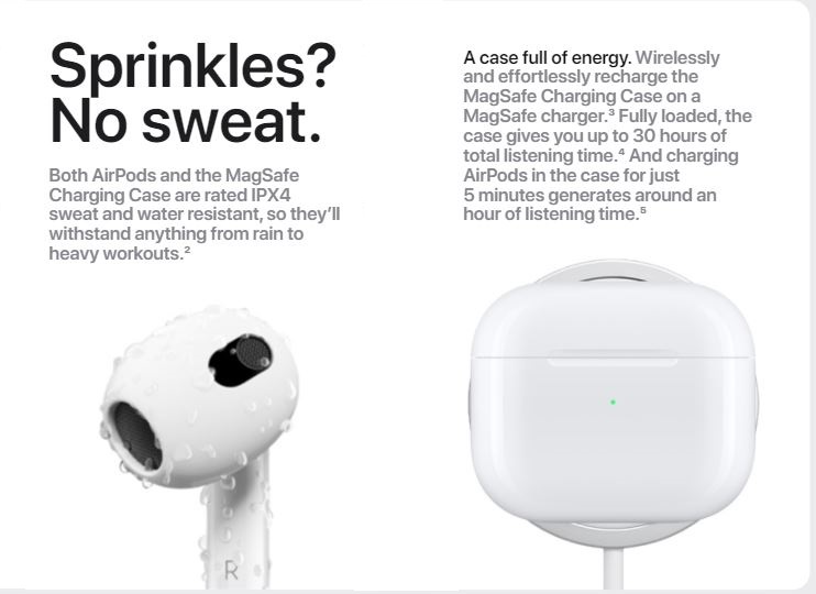 | Key Features | Immersive Audio With these in-ear earbuds, you may enjoy music like never before because they have dual sound for rich, dynamic sound.Spatial audio with dynamic head tracking places sound all around you. Adaptive EQ automatically tunes music to your earsWith up to 30 hours of listening time, these Apple earbuds guarantee that your music never skips a beat. These earphones will therefore keep you comfortable whether you're working out, traveling, or just lounging around the house.Dual beam-forming Inward-facing microphonesForce sensor lets you easily control your entertainment, answer or end calls and more |