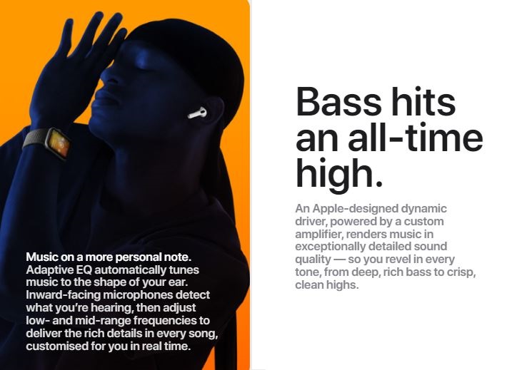 - Spatial audio with dynamic head tracking places sound all around you. Adaptive EQ automatically tunes music to your ears