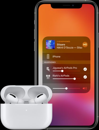 Share a song, podcast or other audio stream between two sets of AirPods with Audio Sharing.