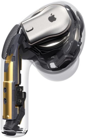 An inward-facing microphone hears sound as you do. AirPods Pro then fine-tune the audio by adjusting the mid and low frequencies.
