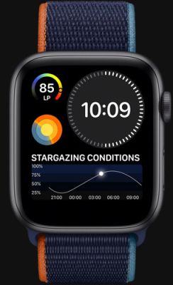 See a visualisation of the day and night cycle on SolarWatch, while Night Sky shows you stargazing conditions.