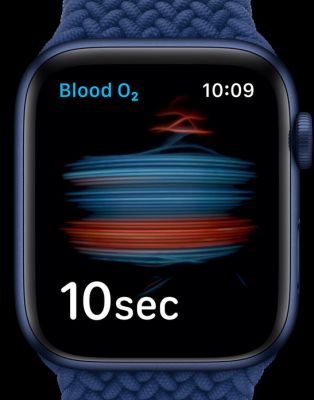 Your blood oxygen level is a key indicator of your overall wellness. It can help you understand how well your body is absorbing oxygen, and the amount of oxygen delivered to your body. The remarkable new sensor and app in Apple Watch Series 6 allow you to take on-demand readings of your blood oxygen as well as background readings, day and night.