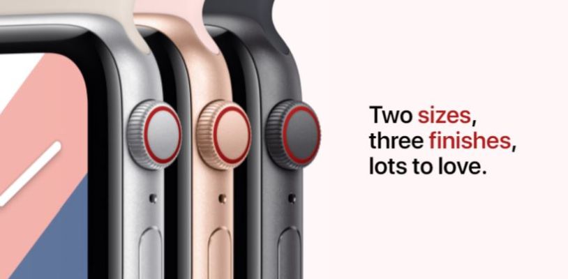 Apple Watch SE comes in a 44 mm or 40 mm case. Choose from silver, gold or space grey, all in 100% recycled aluminium.