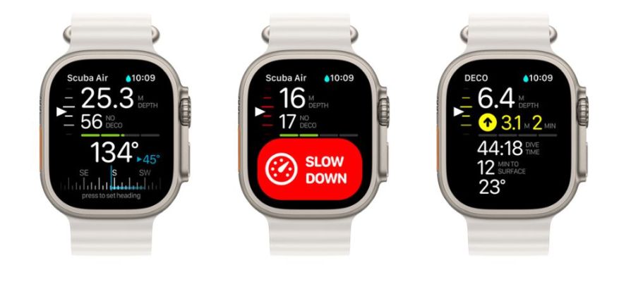 Built to withstand jet-skiing in Maunalua Bay or kitesurfing the Gorge. Apple Watch Ultra features a new depth gauge. It also delivers the data and functionality required by scuba and free divers for descents down to 40 metres.