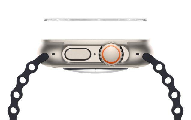 To build the ultimate sports watch, we crafted every element with painstaking attention to detail for unparalleled performance. Titanium strikes the perfect balance between weight, ruggedness and corrosion resistance. The new case design rises up to surround the flat sapphire crystal and protect it from edge impacts. The Digital Crown is larger and the side button is raised from the case, making them easier to use while you’re wearing gloves.