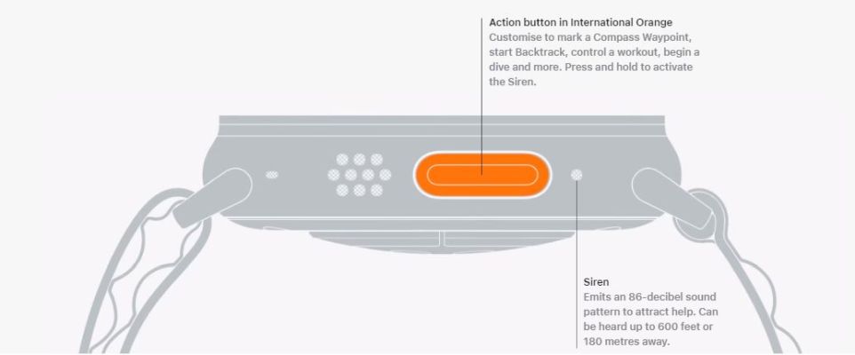 Ready for Action. The new Action button gives you quick, physical control over a variety of functions. It’s customisable and can do things like control a workout, mark a Compass Waypoint or begin a dive. Just like you, it’s full of potential.
