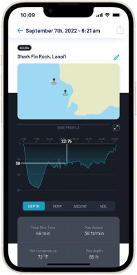 Post-dive data. From sea to cloud. Get the data from your dive immediately after you surface, including your GPS entry and exit points. It syncs automatically to your iPhone and the cloud. See a summary of your dive profile and check out your logbook to search through past dives or share your experiences with friends and family.