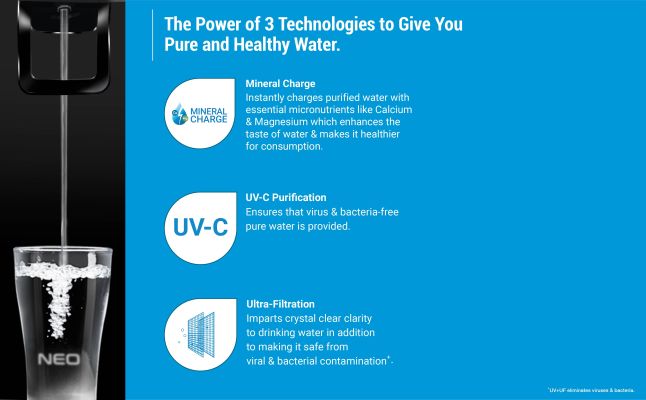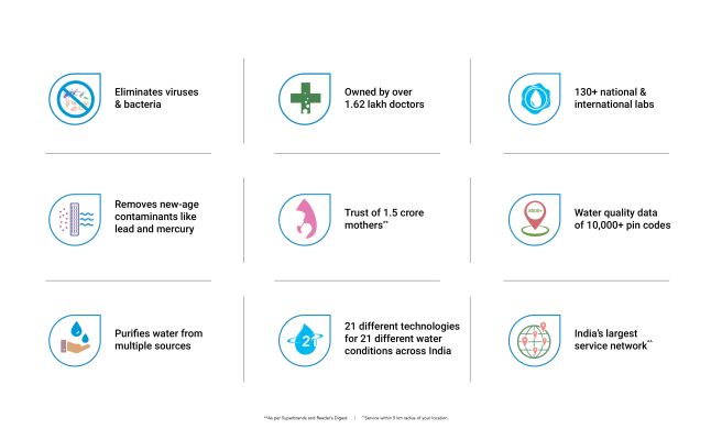 | Key Features | Eliminates Viruses and Bacteria Removes New-age Contaminants Like Lead and Mercury Purifies Water From Multiple Sources 21 Different Technologies for 21 Different Water Conditions Removes Fine Suspended Particles Reduces Excess Chlorine & Organic Impurities UV-C Purification Mineral Charge Technology Membrane Life Enhance |