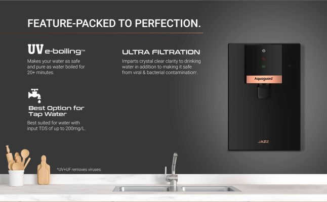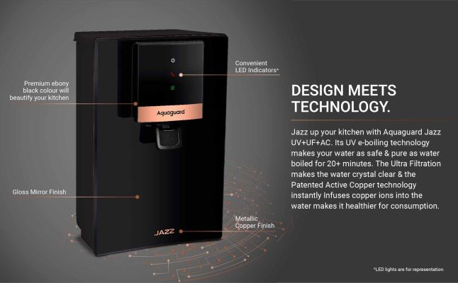 * This Aquaguard JAZZ UV+UF ACTIVE Water Purifier image is for illustration purpose only. Actual image may vary.