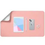 Aropana Vegan Leather Desk Mat, Mouse Pad Large, Computer Table Mat, Reversible Extended Laptop Pad for Desk, Dual side Waterproof Edge-Stitched (23.6"x13.8"inch, Pink / Silver)