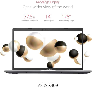 The NanoEdge display gives ASUS X409 a vast screen area for an immersive viewing experience for work and play. Its wide-view FHD panel features an anti-glare coating to reduce unwanted distractions from irritating glare and reflections, so you can truly focus on what's in front of you.