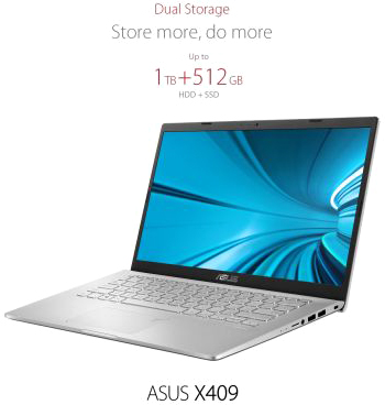 ASUS X409 has a dual-storage design to give you the benefits of superfast data performance and a large storage capacity. Install apps on the SSD for quicker response and loading times, and use the HDD to store large files such as movies, music libraries, and photo albums.