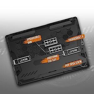 An easy-upgrade design makes sizing up your RAM and SSD a breeze. All you need is a screwdriver to access memory slots and storage bays, while a special pop-open nut lifts one side of the panel