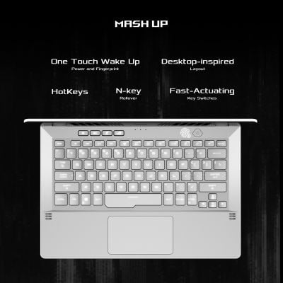 It feature fingerprint login on the power button, making waking up the laptop as simple as unlocking your phone. The desktop-inspired layout with dedicated hotkeys that put volume, microphone mute, and ROG Armoury Crate software within easy reach.