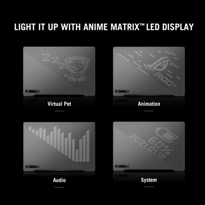 Featuring a first-of-its-kind AniMe Matrix display, the G14 offers deep personalization in a truly unique way. The groundbreaking display is made up of 1,215 individual mini-LEDs that can be used to display custom images and animations that express your creativity and audio visualizations that match music playback