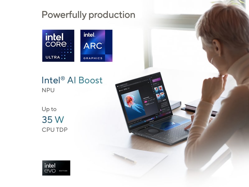 Zenbook DUO delivers powerful performance and AI Ready features. The blistering fast processor, dedicated NPU and graphics makes tasks easier with nowadays AI enhancement. Its PCIe 4.0 SSD storage, LPDDR5 RAM and WiFi 6E allow you explore more.