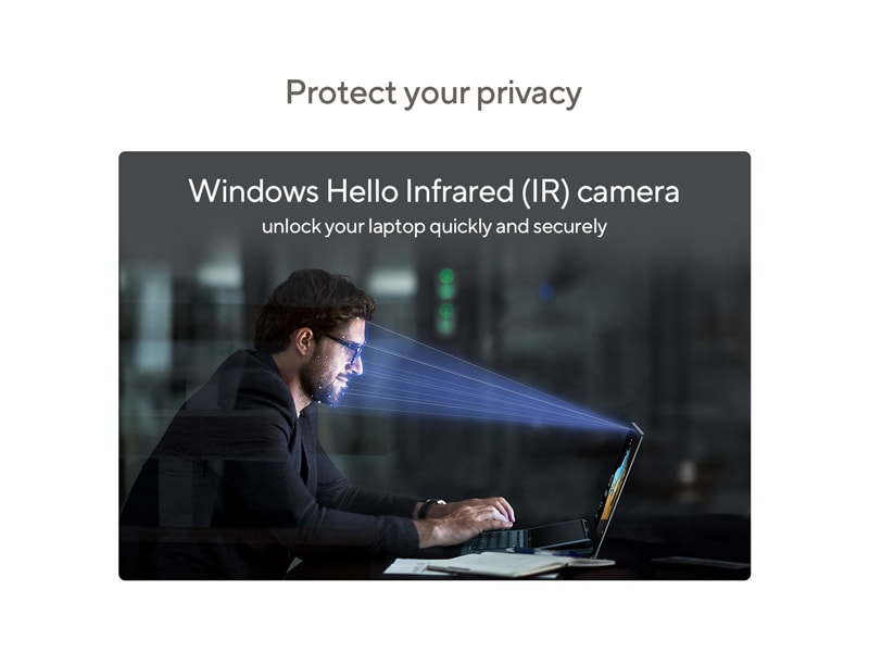 Stay secure with the camera privacy shield and fast, password-free face login.