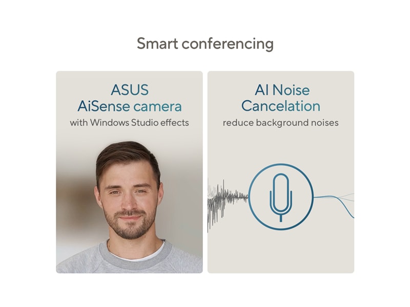 Take back control of your meetings with our innovative camera system and ASUS AI Noise-Canceling Technology, with new algorithms to make your conference calls even more productive.