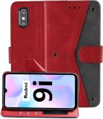 Autofocus Faux Leather Back Case Flip Cover for Mi Redmi 9i, Redmi 9i with ID Card Slot | Foldable Stand | 2 Card Slot | 1 Cash Slot | Magnetic Closure - Executive Red, 22604