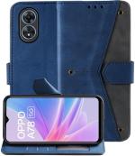 Autofocus Faux Leather Back Case Flip Cover for Oppo A78 5G with ID Card Slot | Foldable Stand | 2 Card Slot | 1 Cash Slot | Magnetic Closure - Executive Blue, 23656