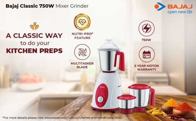 * This Bajaj Classic Mixer Grinder image is for illustration purpose only. Actual image may vary.