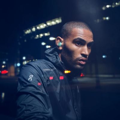 Wireless earphones designed for sport. Expertly crafted for powerful music performance in any weather. Waterproof, secure-fitting, and long-lasting battery life.