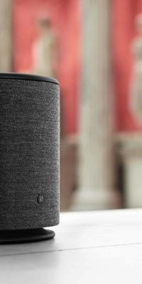 Home speaker blending cool aluminium and warm fabric. True360 sound, tactile touch control and stylish design options.