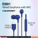 Blaupunkt EM01 in-Ear Type C Wired Earphone with Mic and Deep Bass HD Sound Mobile Headset with Noise Isolation (Black)
