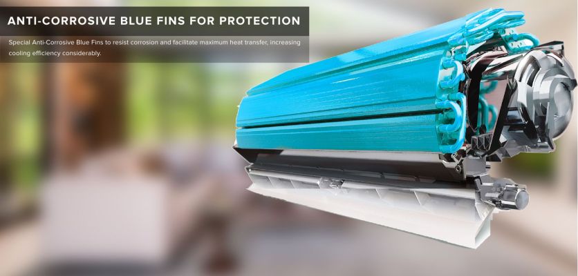 Anti-Corrosive Blue Fins for Protection – Special Anti-Corrosive Blue Fins to resist corrosion and facilitate maximum heat transfer, increasing cooling efficiency considerably.