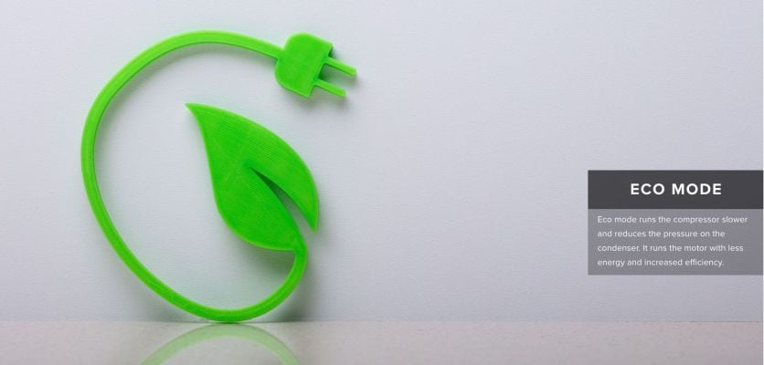 Eco Mode – Eco mode runs the compressor slower and reduces the pressure on the condenser. It runs the motor with less energy and increased efficiency.
