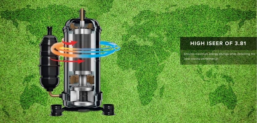 High ISEER of 3.81 – Ensures maximum energy savings while delivering the best cooling performance