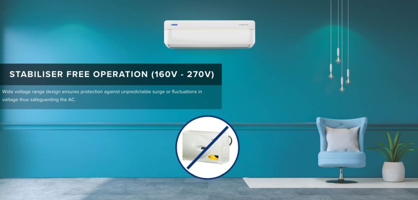 Stabiliser Free Operation (160V – 270V) – Wide voltage design ensures protection against unpredictable surge or fluctuations in voltage thus safeguarding the AC.