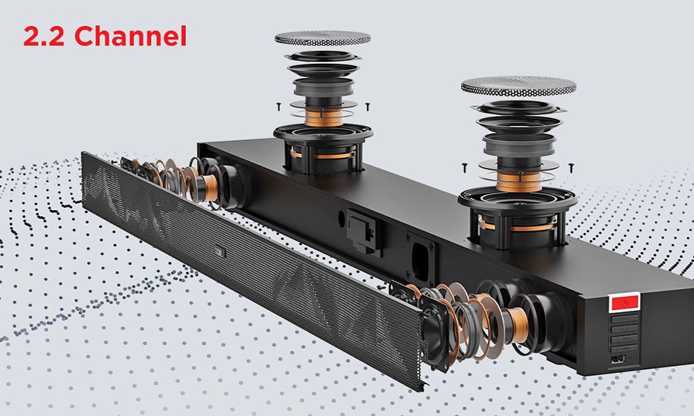 | Key Features | Built in Sub Woofer BT v5.0, AUX, USB, HDMI(ARC) Interior Enhancing Design Master Remote Control EQ Modes: Movies, Music, News 2.2 Channel 100 Watt RMS Output |