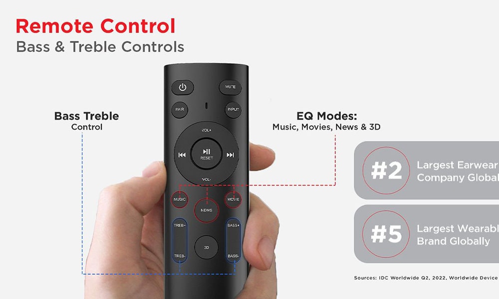 - EQ Modes: Movies, Music, News