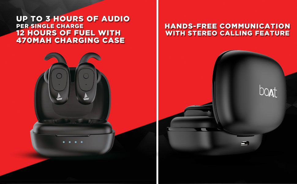 - The premium carry-cum-charging case allows for easy maneuverability as you ride the highest waves of nirvana on your boAt Airdopes 200 with a total of play-time of up to 12 Hours