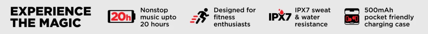 Its power-packed 500mAh charging case ensures 4 times the charge for the earbuds.