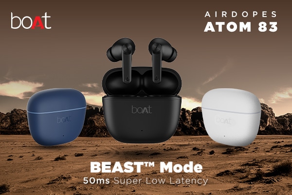 Device Protection Plan AddedboAt Airdopes Atom 83 with upto 50 hrs of playtime, Quad Mics with ENx Technology, Beast Mode, 13mm Drivers, IWP Technology, Bluetooth v5.3, One touch voice Assistant, Bold Blue