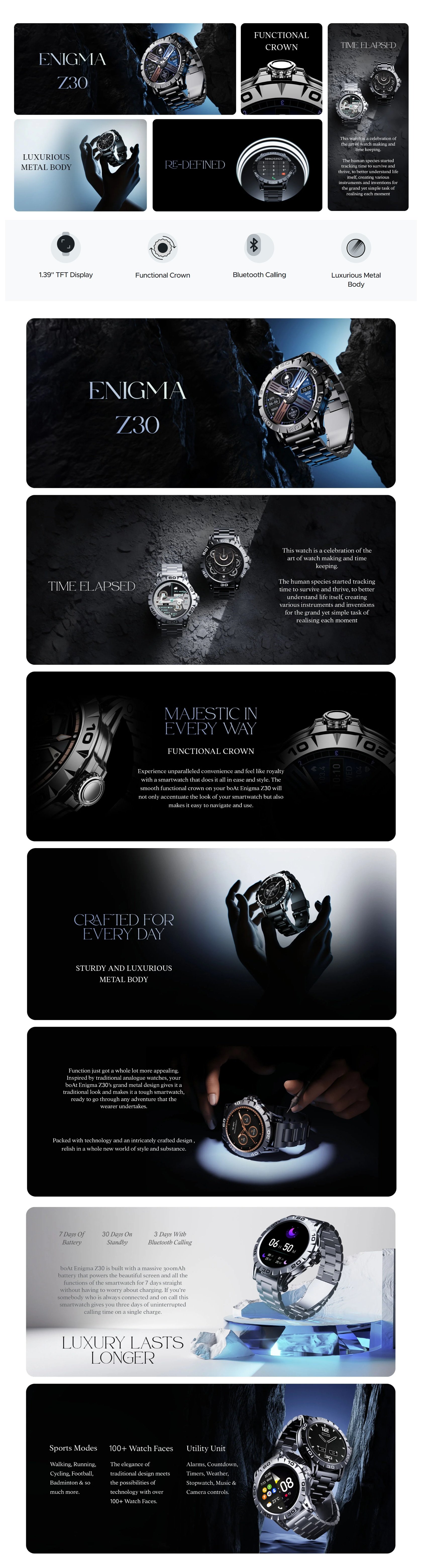 boAt Enigma Z30 with 3.53 cm (1.39 inch) HD Display, Bluetooth Calling,Luxurious Metal Body, HR&SpO2Monitoring, Functional Crown, Widget Control, 100+ Cloud Watch Faces, IP67(Zet Black)