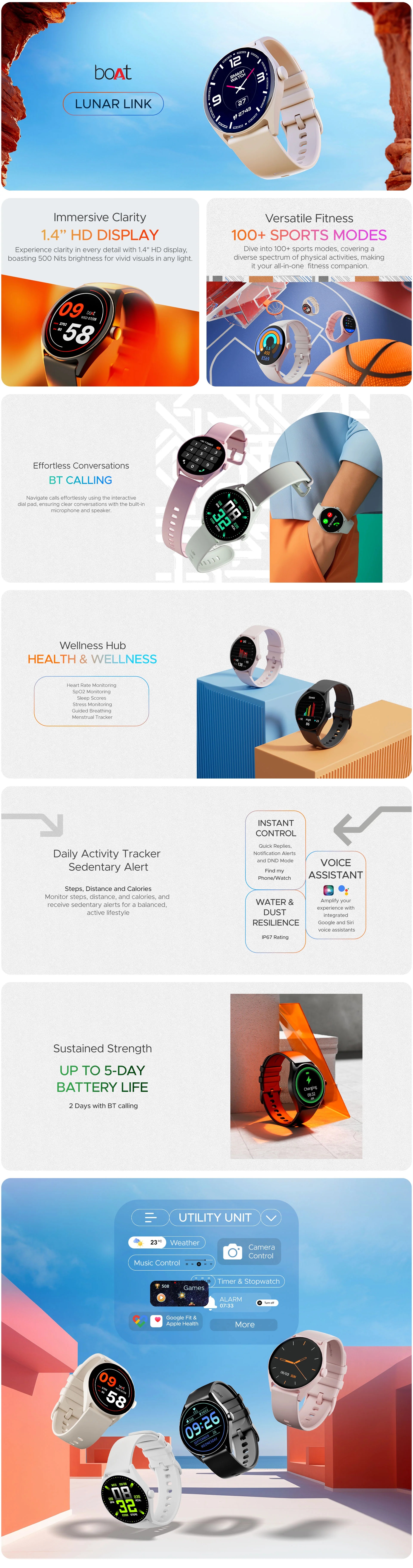 boAt Lunar Link Smart Watch with 3.55 cm (1.4 inch) HD Display, Bluetooth Calling, Multiple Sports Modes & IP67 Rating (Beige)